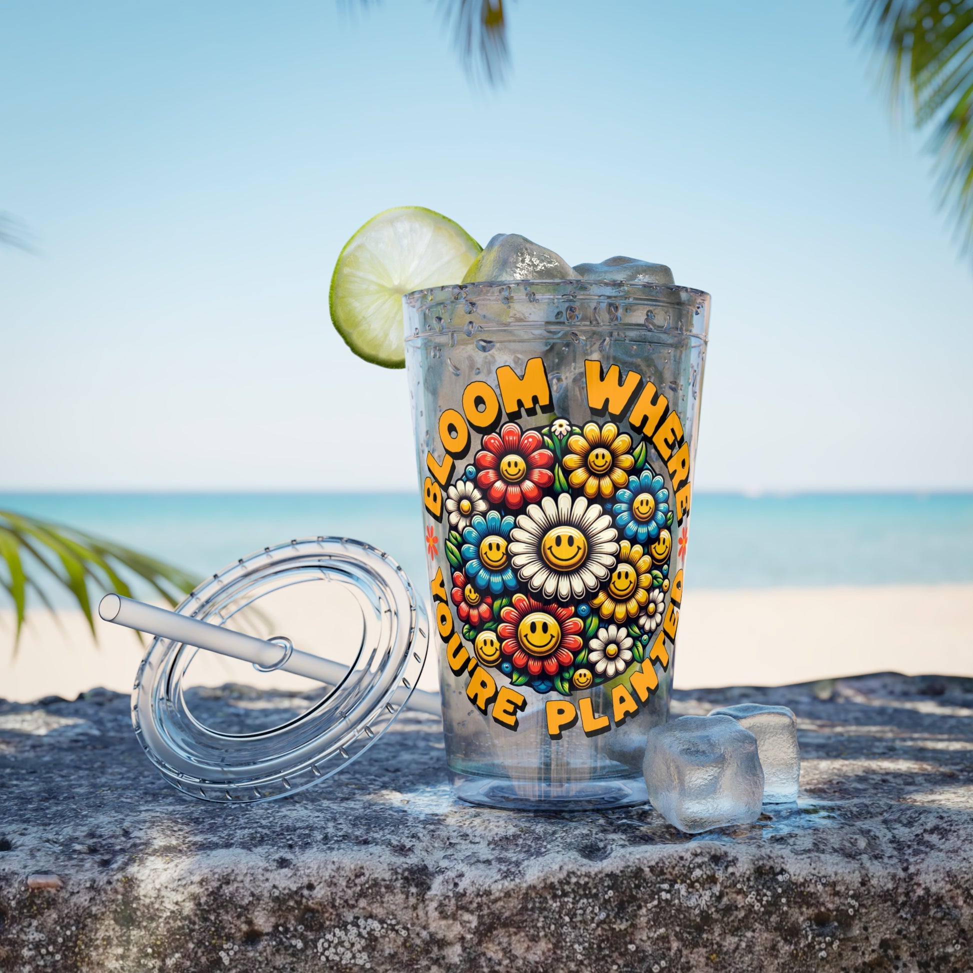 Life’s too short for boring drinkware. Meet the “Bloom Where You’re Planted” Tumbler — a cheerful, retro-inspired cup that’s bursting with color and good vibes. Covered in groovy smiley-face flowers and framed by a motivational message, this 16oz tumbler delivers hydration and happiness in equal measure.