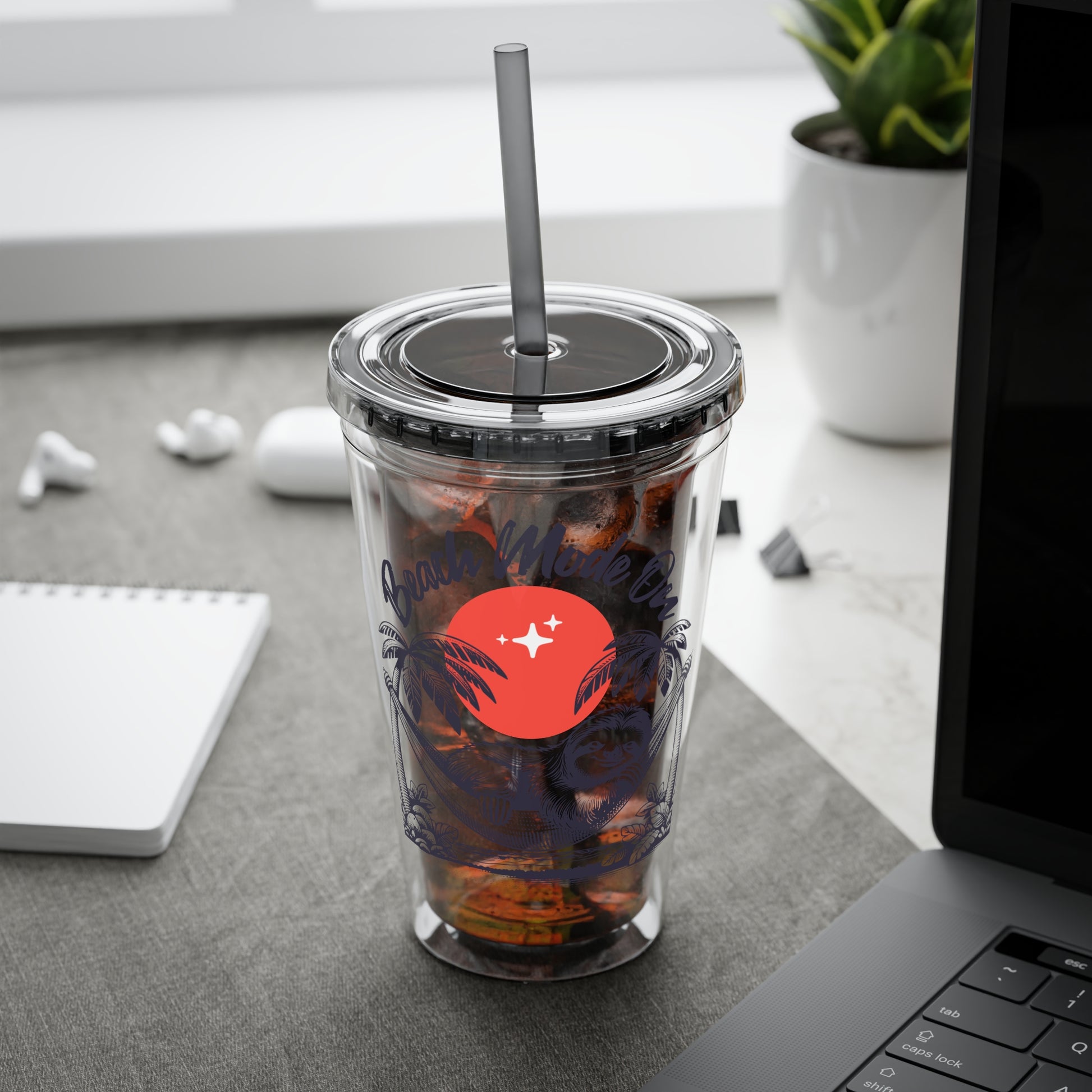 “Beach Mode On” – Sunsplash 16oz Acrylic Tumbler with Lid & Straw